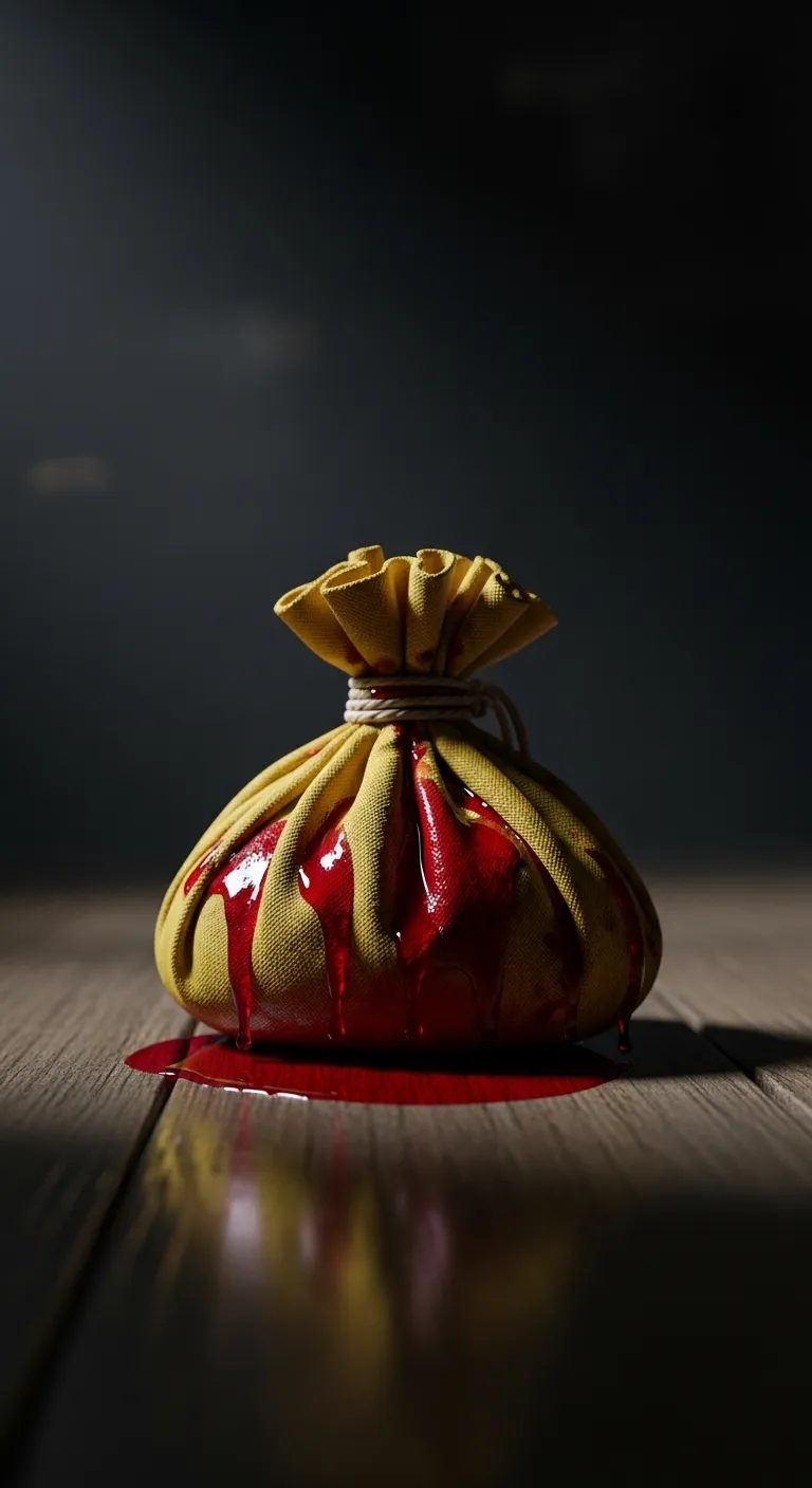 “Ini kerja khianat orang yang dengki,” ujar Pak Haji sambil membuka bungkusan itu dengan hujung bilah pisau kecil. Di dalamnya terdapat tulang kecil yang dipercayai tulang binatang liar, beberapa batang jarum yang sudah berkarat, dan gumpalan rambut yang diikat mati. Pak Haji menjelaskan bahawa kain kuning itu digunakan sebagai ‘pemuja’ untuk memanggil jin bagi menghisap darah kotor wanita dalam rumah ini, bertujuan untuk melemahkan semangat dan memecahbelahkan keharmonian keluarga kami. Cairan merah pada kain itu adalah darah yang ‘dicuri’ daripada aku dan ibu.