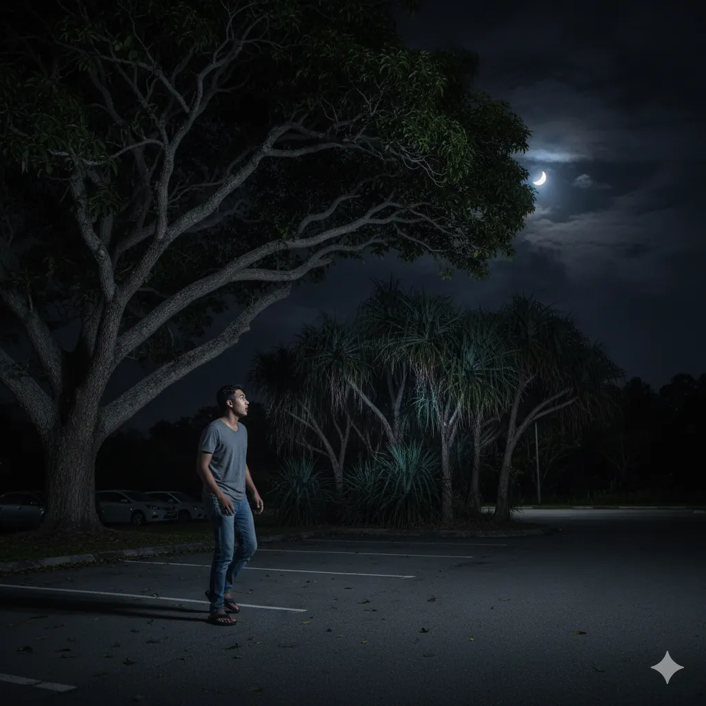 Jam 1:30 pagi. Aku, Amir, mematikan enjin motosikal Honda EX5 kesayanganku. Udara malam terasa dingin dan nyaman menyentuh kulit selepas seharian bekerja di kilang. Aku baru sahaja tamat syif malam, …