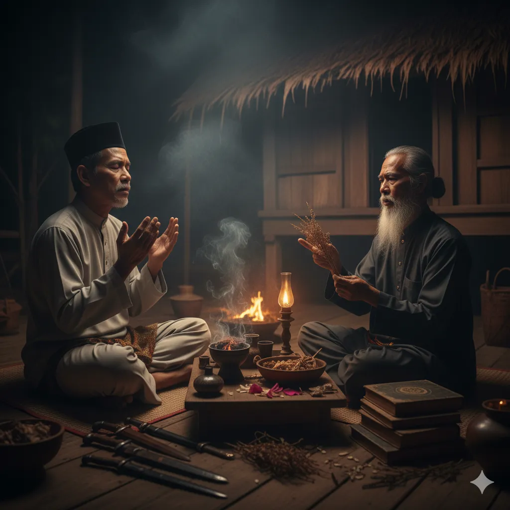 Suatu malam yang gelap dan sunyi, Bakri bertemu dengan seorang bomoh tua yang terkenal dengan ilmu gelapnya, dikenali sebagai Pak Karim, dan Bakri membentangkan hajatnya. “Aku mahu kekayaan yang tiada tolok bandingnya, Pak Karim. Kekayaan yang kekal,” pinta Bakri dengan mata yang bersinar penuh nafsu. Pak Karim tersenyum sinis, menunjukkan barisan giginya yang hitam, lalu menjelaskan, “Kekayaan sebegitu memerlukan pengorbanan, Tuan Bakri. Ia datang dari Sumpahan Abadi, yang akan mengikat satu entiti purba, ‘Raja Jin Tanah’, untuk berkhidmat kepadamu.” Bakri tidak gentar dan menegaskan dia sanggup melakukan apa sahaja.